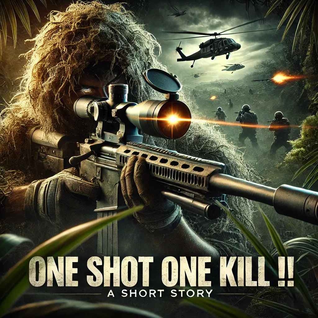 The jungle erupted. The enemy sniper jerked violently backward, his body stiffening before crumpling into the undergrowth with a dull thud.